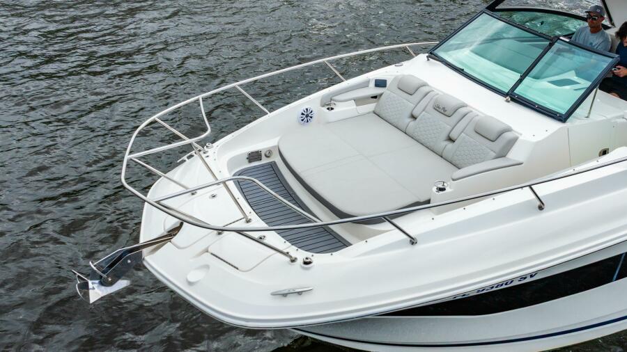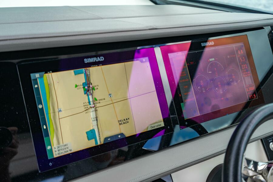 This boat is exceptionally well-maintained and loaded with premium features. It comes with an extended MPP Gold Mercury engine warranty valid through November 30, 2026, and all engine services are up to date. The vessel received a full wax and detail in October 2025, ensuring it looks as good as it performs. Comfort and style are enhanced by Seadek flooring, a hardtop providing ample shade, and an electric aft sun awning. The helm is equipped with dual Simrad screens and a joystick for easy docking, making navigation effortless. Additional highlights include new 2024 batteries, exterior covers made with durable Sunbrella fabric, and a Fusion stereo system for an enjoyable experience on the water.